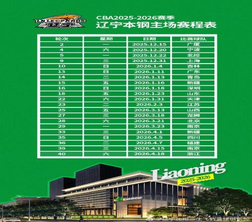 新赛季辽宁男篮的首个主场比赛将在12月15日迎战卫冕冠军浙江广厦队。