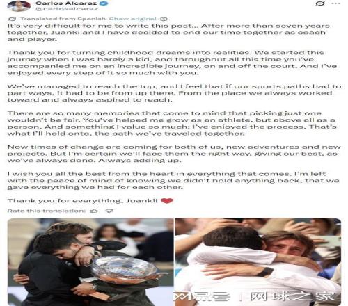 在商业化日益浓重的职业体育世界,阿尔卡拉斯这篇充满人情味的告别信显得尤为珍贵。没有冰冷的官方声明,没有刻意回避情感,他用真诚的文字记录了一段旅程的结束:“我会永远珍惜我们共同走过的这段旅程。”