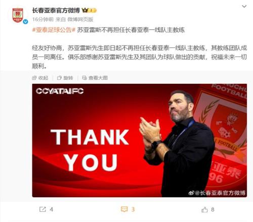 北京时间12月31日,长春亚泰官宣苏亚雷斯离任,为球队2025赛季的降级悲情画上句点。3胜5 平11负的执教战绩,让这位葡萄牙主帅成为降级的直接 “背锅侠”,但将保级失败的责任全部归咎于他,显然有失公允。