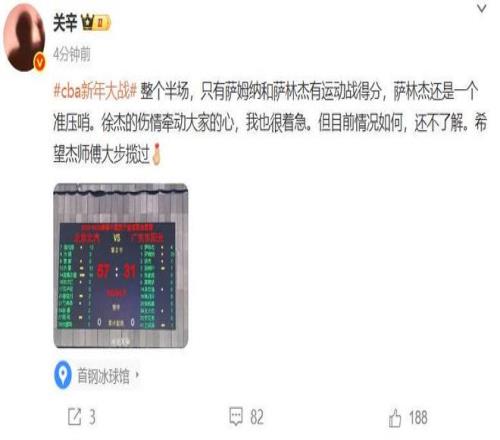 徐杰意外伤退,广东后场只能靠胡明轩和萨姆纳,基本上这场比赛也就交代了。